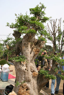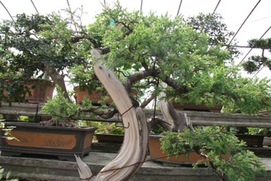 之后,采风团又来到了一位专职经营盆景的农民家中。吴耀明现在是潢川县卜塔集镇园林绿化工程公司的经理兼盆景园艺师。他的公司经营各种花卉苗木和高中低档杂树、古桩、松柏盆景,更是以千百年古稀、珍、齐、特等巨型名贵古树为主。