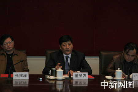 27日,庄河市市长董呈发会见了采访团成员,并就有关问题回答了记者的提问。摄影:宋方灿