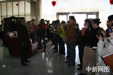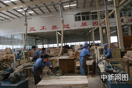 4月27日,来自全国各地的30多家重要网络媒体的代表参观并访问了位于大连庄河的大连华丰家具有限公司。摄影:宋方灿