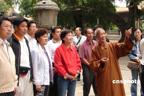 4月27日,以台湾澎湖县议会议长刘陈昭玲女士(上图前左四)为团长的澎湖县议会参访团,在福建泉州开元寺主持道元法师引领下参观这一著名古刹。当天,澎湖县议会参访团访问泉州,先后参观了惠安崇武古城、泉州海交馆、中国闽台缘博物馆、泉州开元寺、泉州天后宫等地方。 作者:傅丹丹
