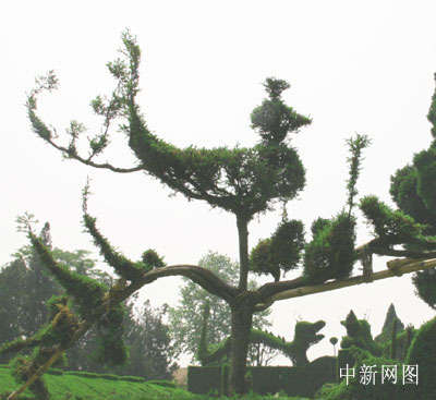 中新网电 第五届“网上看河南”采风团来到河南周口,走进淮阳剪枝公园,不禁赞叹不绝。看着这些惟妙惟肖的作品,导游介绍说,这些造型需要经过育亩、嫁接、揉编、雏型、成型五个阶段,少则二、三年,多则几十年,才能够最后完成一件作品。