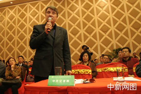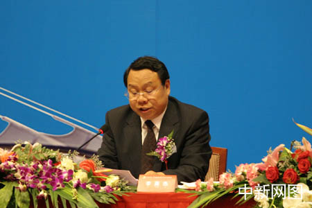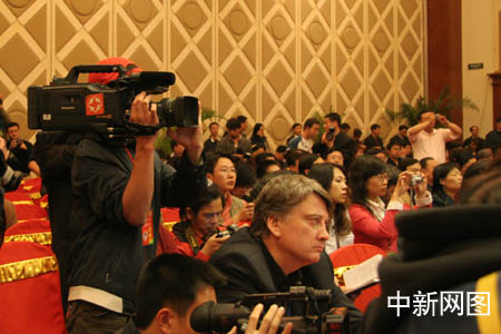 2006中国·沈阳世界园艺博览会(世园会)4月30日上午将正式开园,29日下午,中共沈阳市委、沈阳市人民政府联合召开中外记者见面会。见面会上,中共辽宁省委常委、中共沈阳市委书记陈政高,沈阳市市长李英杰介绍了沈阳世园会的筹办情况,并就有关问题回答了记者的提问。摄影:曾永玉