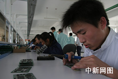 油城大庆的高新区内,也拥有主营通信、电力、电子产品、仪器仪表的开发、生产、销售的现代化高科技企业。图为在一家科技企业工作的一线劳动者们。作者:张哉麟 余瑞冬