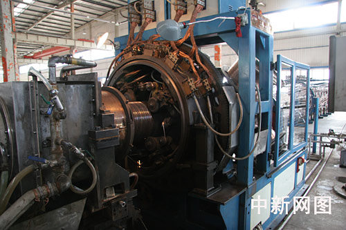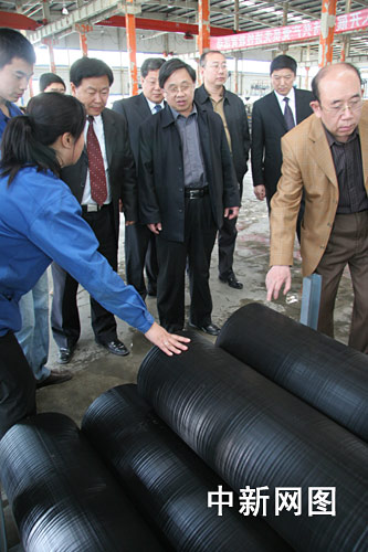 2006年5月12日,“网上看大庆”采访团在中共市委宣传部领导陪同下,参观了大庆高新区的部分工业科技项目。在大庆油田长垣管业有限公司,网络媒体看到了高质量的输油管的制造过程。作者:张哉麟 余瑞冬