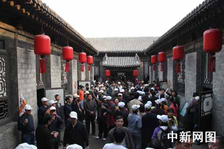 5月13日下午,首届“全国网络媒体山西行”采访团参观了位于山西祁县乔家堡村的乔家大院。记者看到,尽管五一黄金周已过去将近一周,前往参观乔家大院的游客依然将大院挤得水泄不通。