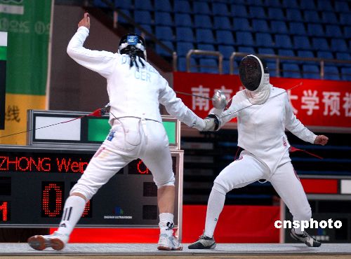 2006年5月20日,在江苏南京进行的2006年国际剑联女子重剑世界杯大奖赛中,仲维萍勇夺女子重剑世界杯大奖赛个人赛冠军。中新社发 刘建民 摄