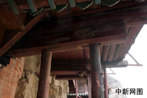 悬空寺由于科学的选址,是建在崖壁凹回去的部分,且两边突出的山崖缓解了风势,东边天峰岭遮挡了太阳,年平均日照时间为2小时,风侵,雨蚀、日晒都对其损害不大。