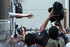 “地检署”和“地院”出动法警维持秩序,不过进进出出的记者不时误认赵建铭将步出侦讯室,哄闹成一团,法警也只能干瞪眼,无力阻挡。当赵建铭戴着手铐搭上囚车,被送往土城看守所时,现场更是一片混乱,摄影记者争相拍摄,为了捕捉好镜头,互相推挤,高声怒骂,情绪都紧绷到极点。