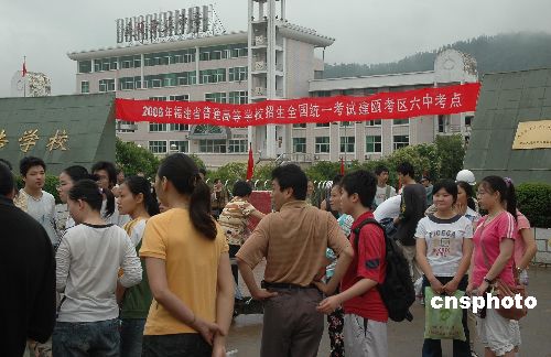 | 全国唯一的因洪灾而延期高考的福建省建瓯市,6月13日重新开考。本月6日,受强降雨影响,建瓯市五个考点中有三个考点被洪水所淹。经教育部批准,该市高考改期。洪水后退后,该市全力以赴组织力量抢修毁坏的电力线路,供水系统,清淤排障,消毒杀菌。在9日晚,该市所有考点完全具备应考标准,经上级批准于13、14日重新高考,试卷将启用B卷。13日参加建瓯市灾后高考复考的四千六百八十一名考生中,无一人因灾缺考。图为13日,冒着毛毛细雨,灾后延期高考的考生就早早来到考场外等待。中新社发 魏永青 摄