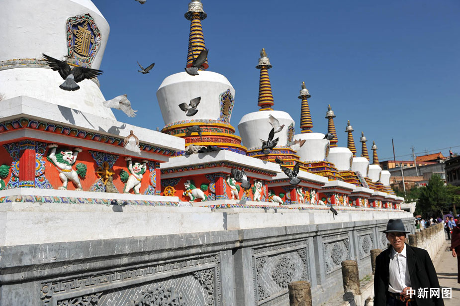 图为塔尔寺门前的“如来八塔”。中新网记者 金硕 摄