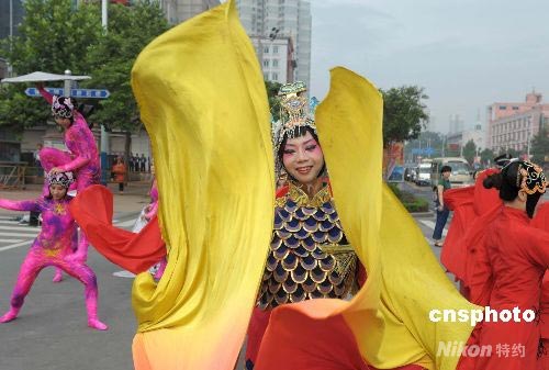 图:济南群众精彩文艺表演迎接奥运火炬