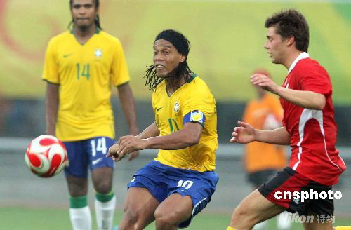 图为巴西队小罗正在带球。