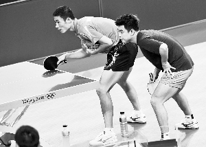 昨天下午,国乒男队训练了近两个小时,比原定计划多了差不多一小时———当然这不是照顾东道主,而是国乒队的运气不错。“我们很幸运。下午3点我们正要离开时,发现有一张空球桌,还可以再训练一小时,所以我们又练了45分钟。我们练习了发球和多回合作战,尽量更适应球速和空调风。运动员在赛场上精力一般比较集中。我们不进行任何针对性练习,只是保证他们状态良好和动作流畅。”(孙海光)