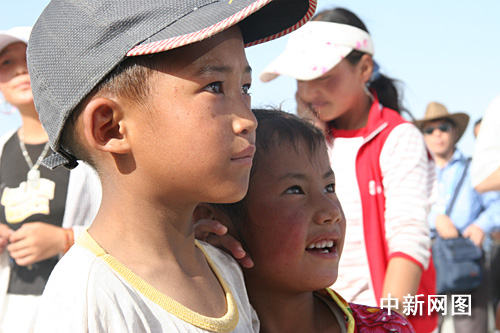 这一对不知名的藏族小兄妹虽然不会说也听不懂汉语,但认得记者手中的照相机,在采访团记者们的纷纷要求下,小兄妹很配合地摆了许多的POSE,拍了一个又一个合影。