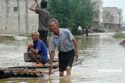 八月六日,台风“派比安”已远走,广西重灾区横县道路仍被淹。派比安减弱成热带风暴后,其中心经过的广西横县损失惨重,经初步核实,全县因灾死亡五人,被冲走稻谷十八万公斤,农作物受灾面积六万多亩,直接经济损失达零点九一亿元人民币。中新社发 蒋雪林 摄