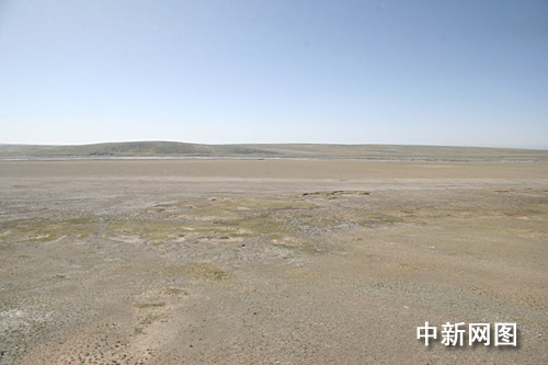 8月4日晨,中央对外新闻单位青藏铁路报道团的一行记者们从青海省格尔木市搭乘K917次火车前往西藏自治区首府拉萨市。图为著名的可可西里。