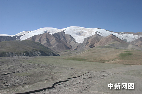 8月4日晨,中央对外新闻单位青藏铁路报道团的一行记者们从青海省格尔木市搭乘K917次火车前往西藏自治区首府拉萨市。火车刚出格尔木市不久,记者们就见到了本次活动的第一座雪山,玉珠峰。