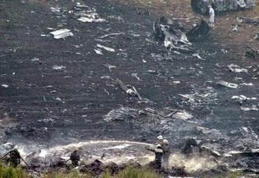 俄罗斯一架飞往圣彼得堡的图154客机8月22日在乌克兰东部坠毁,机上约有160名乘客和10名机组人员。图为俄罗斯消防队员在客机失事现场灭火。(春风)
