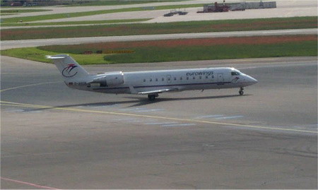 据美国有线电视新闻网报道,一架中型客机27日凌晨在美国肯塔基州列克星敦市机场坠毁,机上50人全部死亡。图为与坠毁飞机相同的机型CRJ-100。(春风)