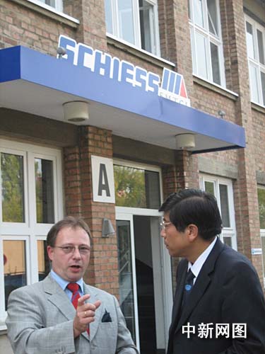 德国希斯公司外方总经理DR.Nene Nitsche对中国品牌海外行采访团表示,自2005年被沈阳机床集团收购至今,公司业务已大有起色。(图为DR.Nene Nitsche和商务部外贸司副司长霍建国交流) 作 者:俞岚