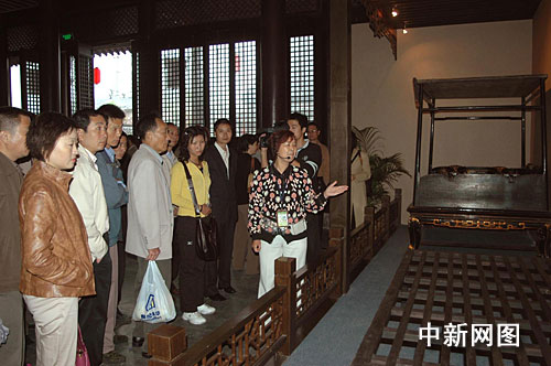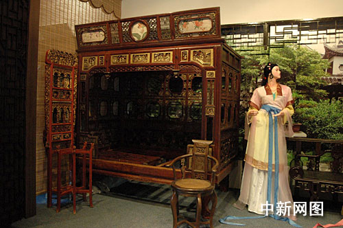 近百张风格各异的中国古床和10余组人物、场景介绍吸引了众多游客,其中真金装饰的千金小姐床、形似家居的八步床成了游客闪光灯下的“宠儿”。
