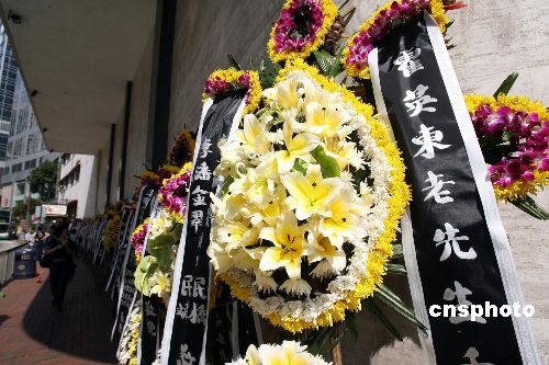 全国政协副主席霍英东的丧礼将于7日上午举行。6日下午四时设灵,接受各界人士的拜祭。据了解,霍英东的悼念仪式将按照国家领导人的规格举行,同时结合香港的风俗习惯,庄严而隆重。中新社发 洪少葵 摄