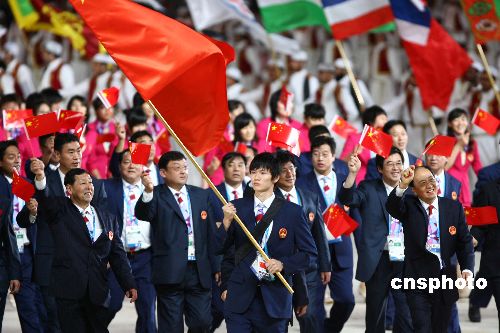 以羽毛球男选手鲍春来为旗手的中国体育代表团第七位入场,本次中国代表团由九百二十八人组成,其中运动员六百四十七人。开幕式上,朝鲜和韩国代表团再次共同入场,这是朝韩体育代表团第八次在亚运会、奥运会和东亚运动会等国际综合性运动会上共同入场。东道主卡塔尔代表团在旗手、手球队员艾哈迈德·萨阿德的带领下最后一进入体育场。