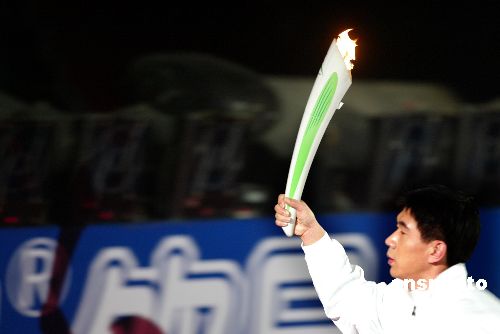 2007年1月28日晚8时,第六届亚洲冬季运动会开幕式在在吉林长春五环体育馆隆重举行。李佳军、张付、张艳梅、袁野、牛丽杰和徐囡囡等六名长春籍运动员共同点燃了火炬。中新社发 杜洋 摄