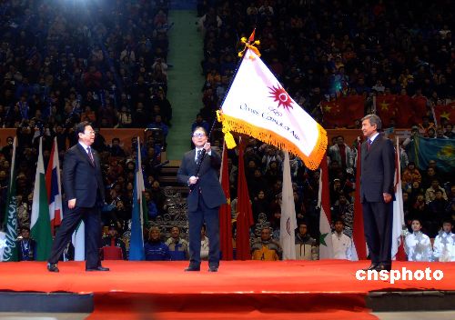 第六届长春亚冬会闭幕式2月4日晚在长春举行,至此,经过8天5个大项10个分项47个小项的比赛,本届亚冬会圆满落幕。中新社发 杜洋 廖攀 摄