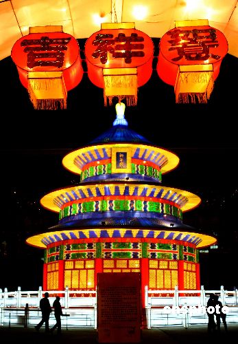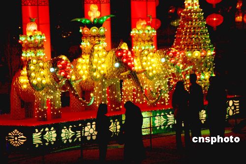 2月26日,当夜幕降临,瓜乡哈密被笼罩在一片流光溢彩中,各种元霄花灯齐放、美景迷人,到处充满了节日的喜庆气氛,吸引了众多的游客观看。中新社发 普拉提 摄