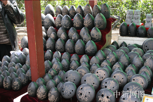 现代陶埙,是与专业音乐工作者共同研制开发的最新产品,现在已由一个音孔演变为九孔和十一孔(专业演奏用)。它音调丰富,音阶标准,不仅可以奏出古雅深沉如泣如诉的悲凉曲调,还可奏出顽皮幽默的欢快乐章,陶埙造型美观多样,制作精良,集实用与观赏为一体,是收藏和馈赠亲友的最佳礼品。 陶埙产品分为红陶和黑陶,红陶为烧制的原色,黑陶系采用特殊工艺烧制,更受现代人喜爱。陶埙表面图案分为隐刻和浮雕,隐雕图案是烧制成品后雕刻的,而浮雕则是在陶胚上雕刻后再入窑烧制,二者虽工艺不同,但均具有异曲同工之美感。