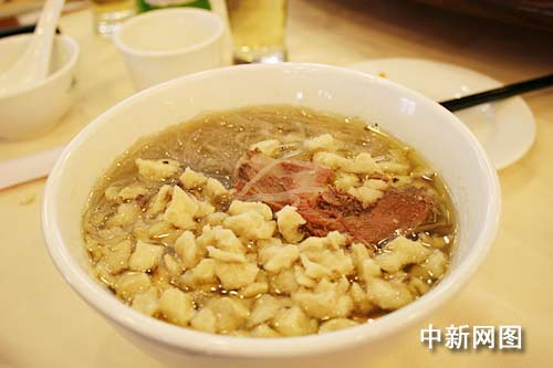 正宗的泡馍是要自己用手这样把馍掰成黄豆粒大小,然后再由厨师加汤。