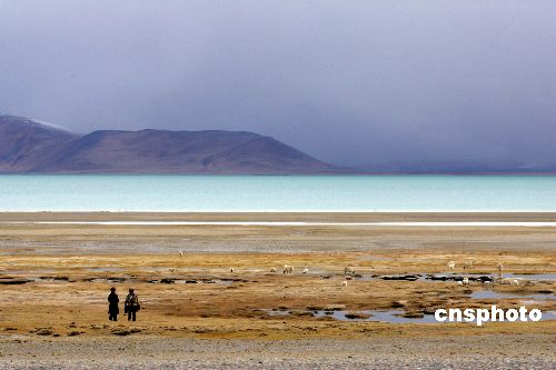 七月一日,世界上海拔最高、线路最长的高原铁路青藏铁路将全线通车,一条钢铁游龙将史无前例地穿越可可西里、三江源、羌塘草原,游进那个结着黑冰、开着雪莲花的高原深处,到达圣地拉萨。中新社发 武仲林 摄