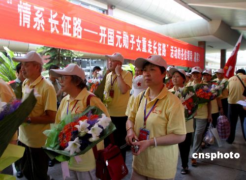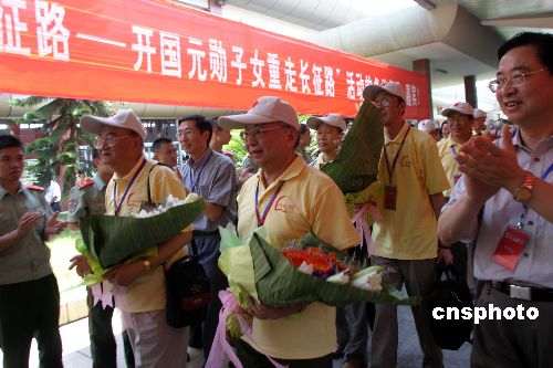 中新社三明七月二十日电(记者淮黎霞)参加“情系长征路——开国元勋子女重走长征路”活动的近三十位新中国开国元勋、将帅后代,今天下午抵达福建三明市宁化县——红军七十二年前踏上举世闻名的二万五千里长征的出发地之一,受到当地民众、驻军和学生亲人般的热烈欢迎。他们将于这里出发,循着父辈的足迹重走长征路。