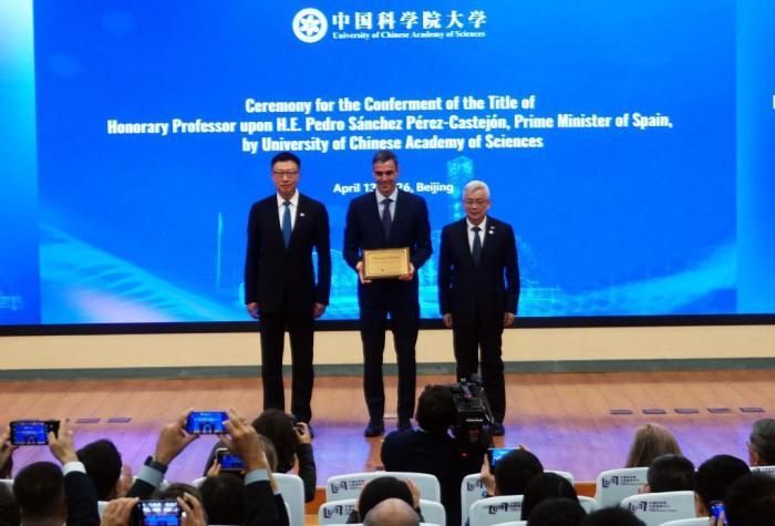 西班牙首相桑切斯访问中国科学院并接受国科大名誉教授称号