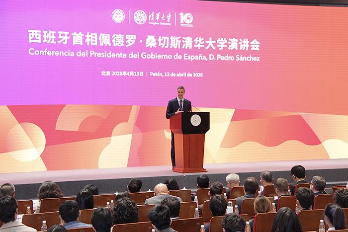 西班牙首相桑切斯在清华大学发表演讲