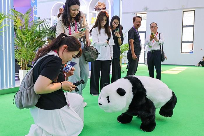 山东青岛:智能机器人亮相野生动物园 人机共舞引客来