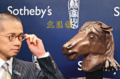 将于今年10月份在香港苏富比拍卖会上出现的圆明园遗物——马首铜像的估价为6000万港币,此价格是否昂贵?10余年前从国外拍卖会上将其买回的藏家告诉记者,这件艺术品的艺术价值极高,它卖6000万港元并不贵。