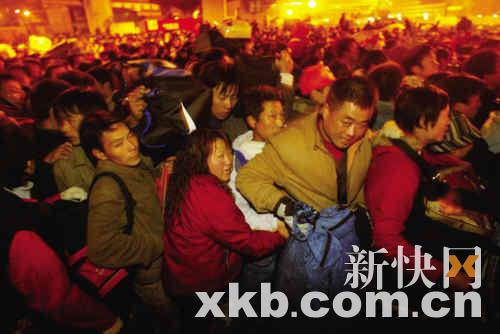 持续一周的大面积旅客滞留,昨日又创新高——至少24万人从四面八方涌到广州火车站广场。为防止婴幼儿被挤伤,广州市越秀区政府在交易会馆内专设了一个“母婴候车室”,凡是2岁以下的儿童以及孕妇乘客在广场内都可以乘专车到馆内候车。
