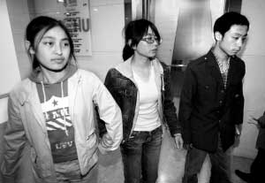 图为来自灾区的刘怡雪、白琳、陈兵(从左至右)。记者 李木易/摄