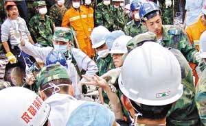 截至记者离开现场时,有9个鲜活的生命被来自全国各地的解放军战士和抢险人员从废墟中解救出来。