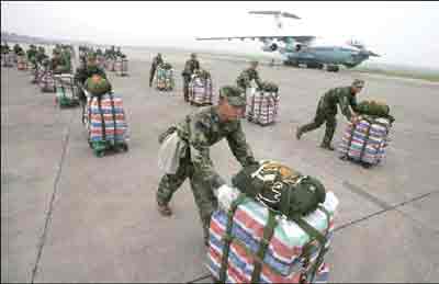 姚恒斌:我们指挥部由成空、空降兵和地方组成。每天晚上我们都要开会,总结一天的情况,根据各地物资的需求情况,确定第二天的空降任务。所有的救灾物资,通过四川省的民政部门统一输送到我们这里,然后再统一调配。(记者 刘薇)