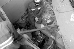 救援人员在废墟中搜救本报专图 侯玉才