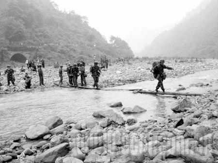 “我们在这里等候团长和战友们回来,他率领部队正引领数百灾民从高山密林中向汉旺转移。”前日19时,有着“乌蒙铁军”之称的解放军某部团政委曾祥明站在乱石嶙峋的绵阳河上游河谷中,十分焦急地告诉记者,他们已与团长周宏许所率领的数百官兵失去联系10多个小时了。