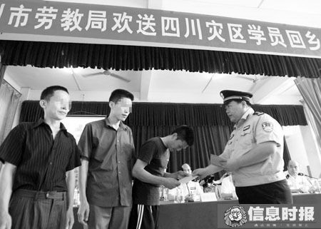 “我出去以后决心痛改前非,好好做人,要把广州人民的关爱带回家乡,积极投身救灾和灾后重建工作……”昨日上午9点半,广州市潭岗劳教所一处礼堂内正举行一个特殊的仪式,29名四川省籍的劳教学员被提前解教,他们将乘坐当天下午的火车返回家乡,每人还领到了500元慰问金。