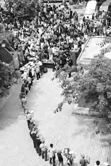 5月15日下午2时42分,天很热。什邡市洛水中学高二学生许忠瑞满头大汗地和同学们从一辆拖拉机上搬下一个黄色口袋———里面装着一具遇难者的尸体。