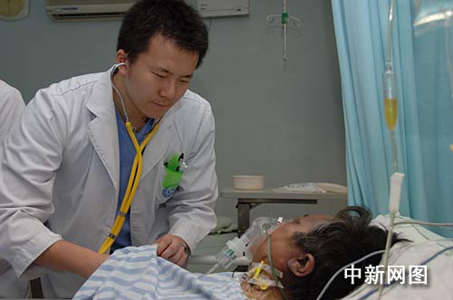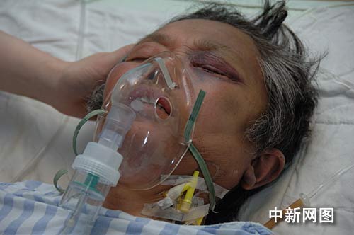 图为王友琼老人在重症监护室接受密切观察和救治。作者:田春