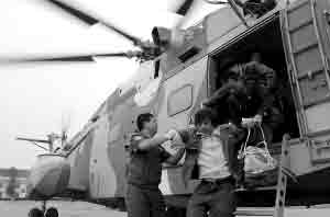 随着救援工作从县级城市向周边乡镇的延伸,被地震和泥石流大面积破坏的山间公路越来越严重地影响到地面搜救的推进速度,在这样严峻的形势下,开辟一条迅捷安全的空中通道显得尤其重要。绵竹清平镇、彭州银厂沟、汶川县映秀镇……将这些点与成都串联起来,便是南空某搜救团开展抗震救援实施行动以来的航线图。