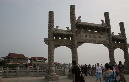图为山东蓬莱新兴景区“八仙过海口”,游人如织。