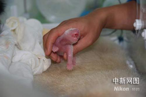 与“龙欣”一同转移的大熊猫“蝈蝈”于七月六日产下了今年的第一对双胞胎。